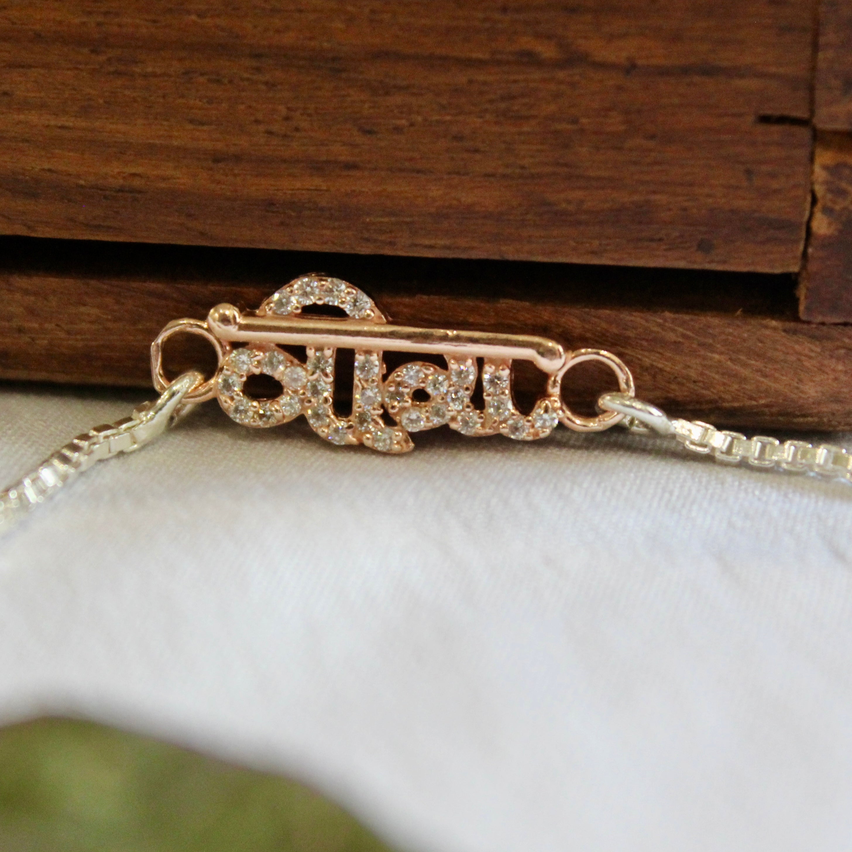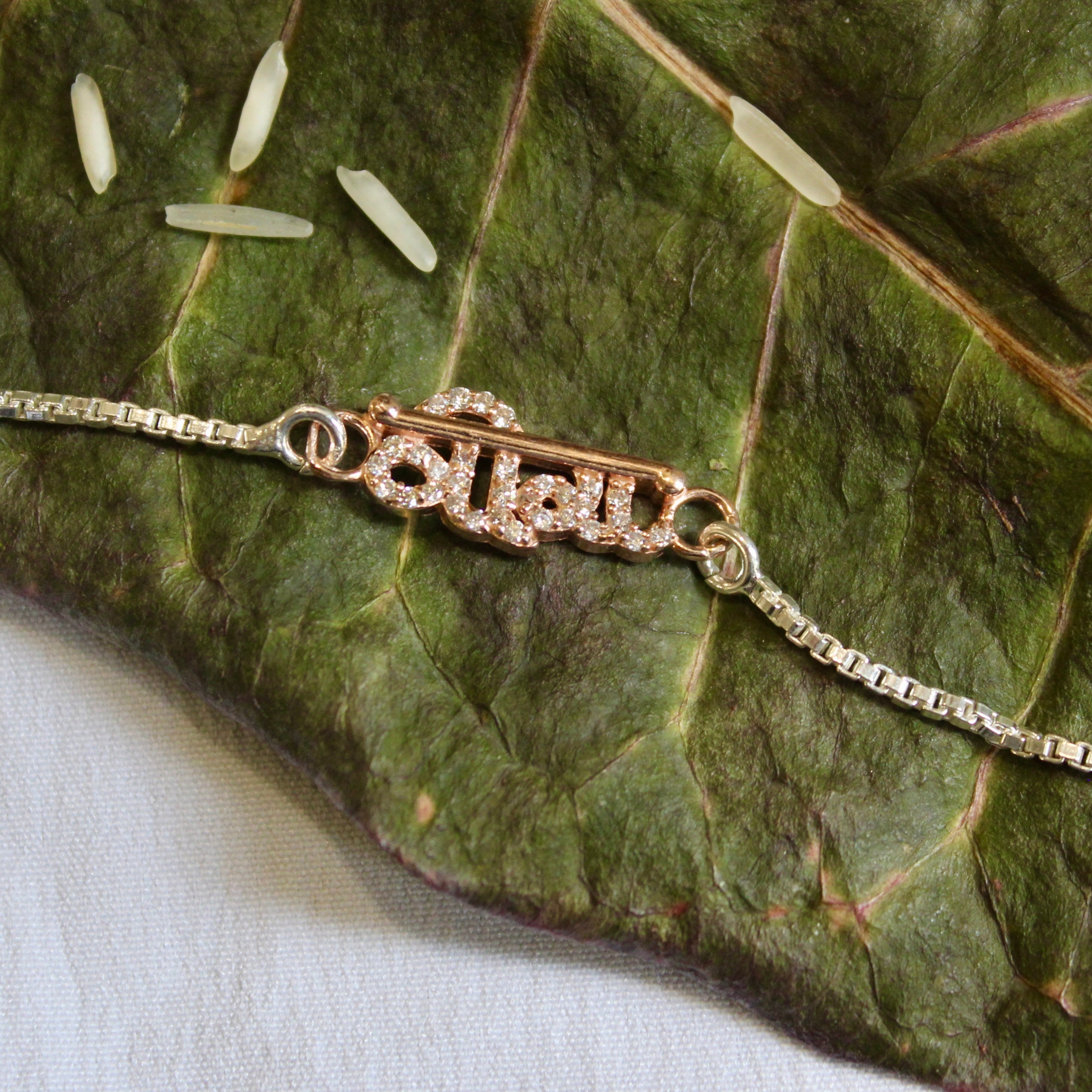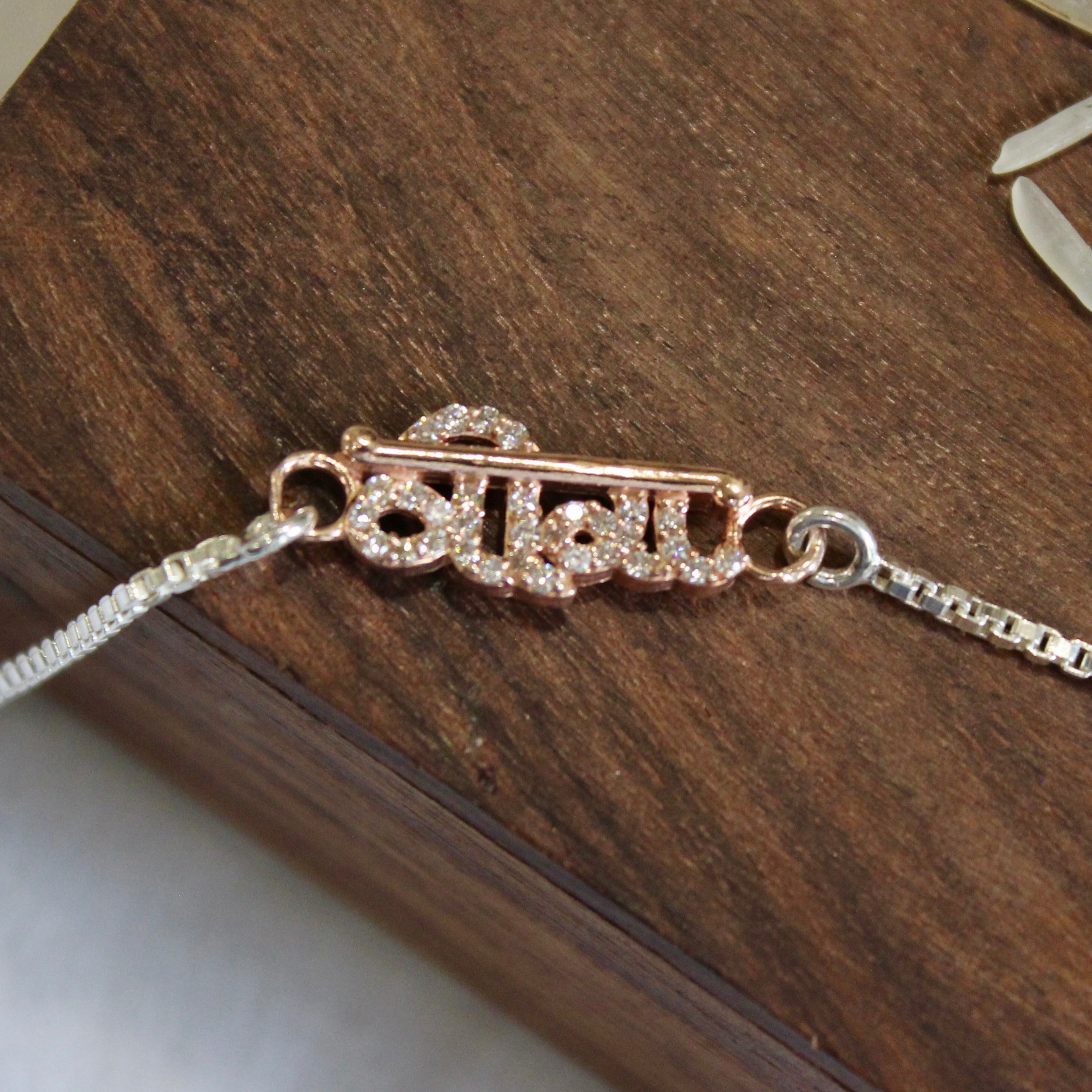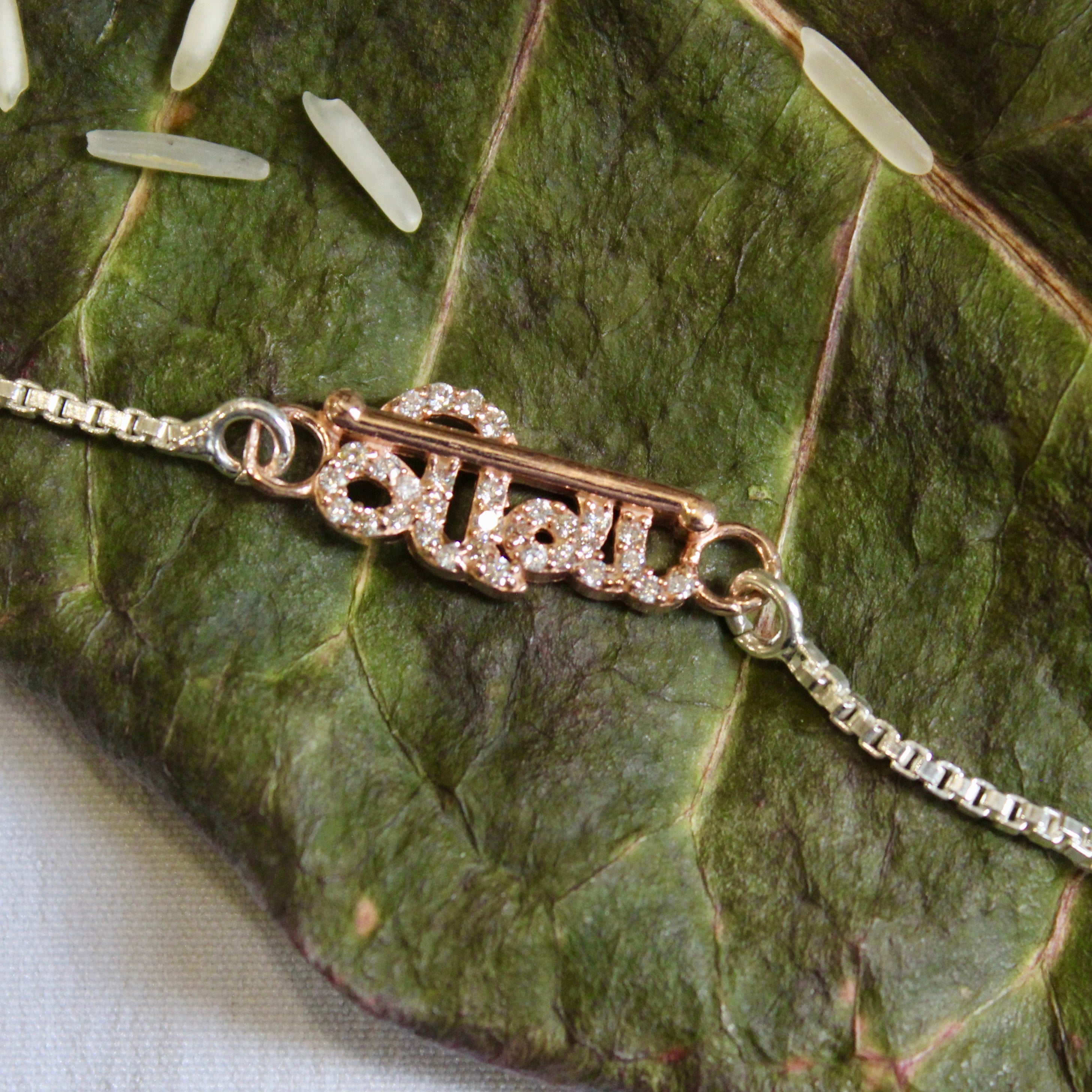 "VEERA in Hindi" Silver Chained Rakhi in Rose Gold polish